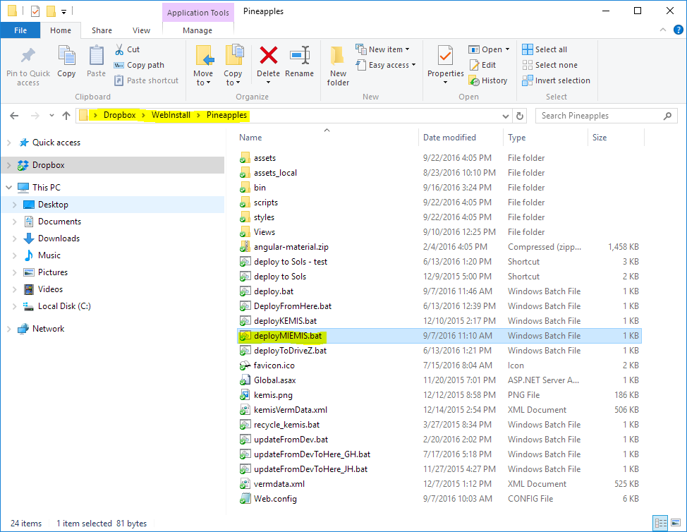> cd C:\Users\Administrator\Dropbox\WebInstall\Pineapples\ > deploy.bat miemis