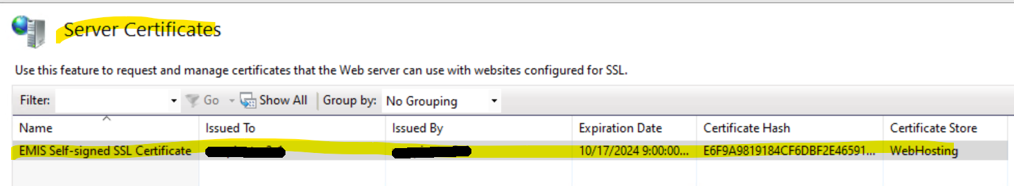 The newly added self signed certificate should look like this.