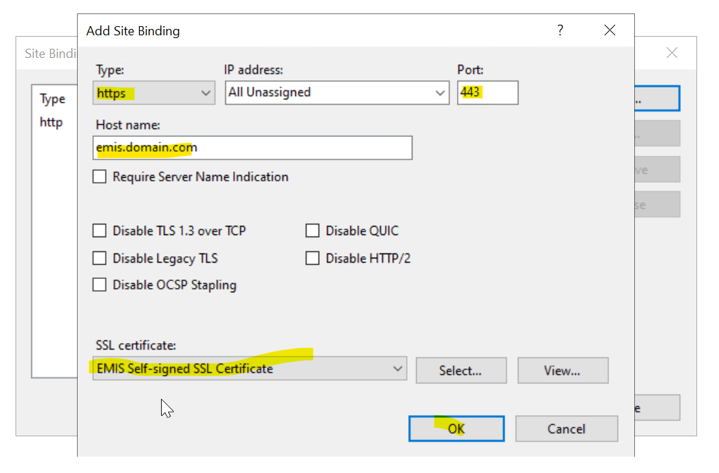 Add a new bindings for https like follows.
