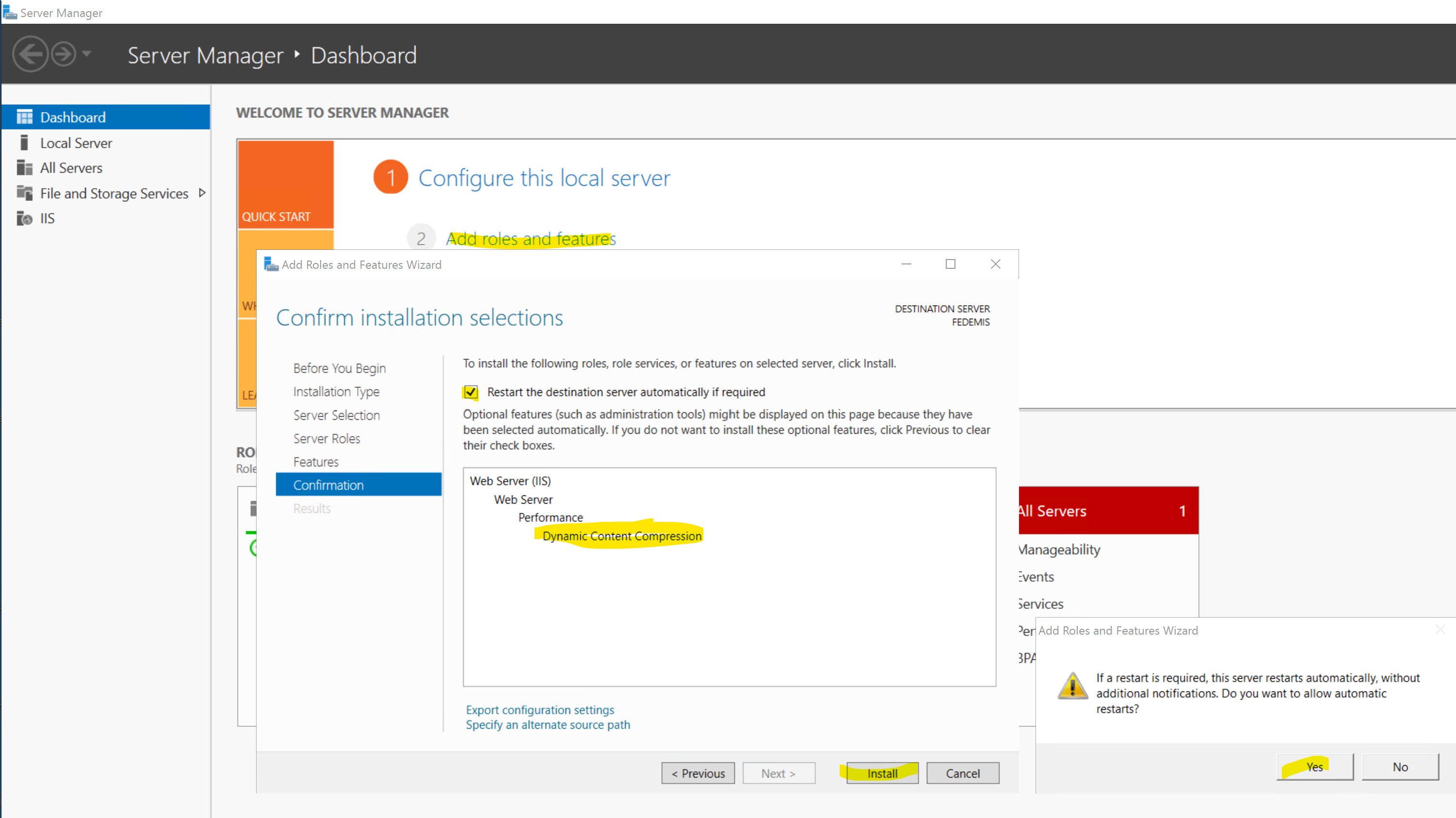 Essentially you can simply install the dynamic compression feature as shown below.