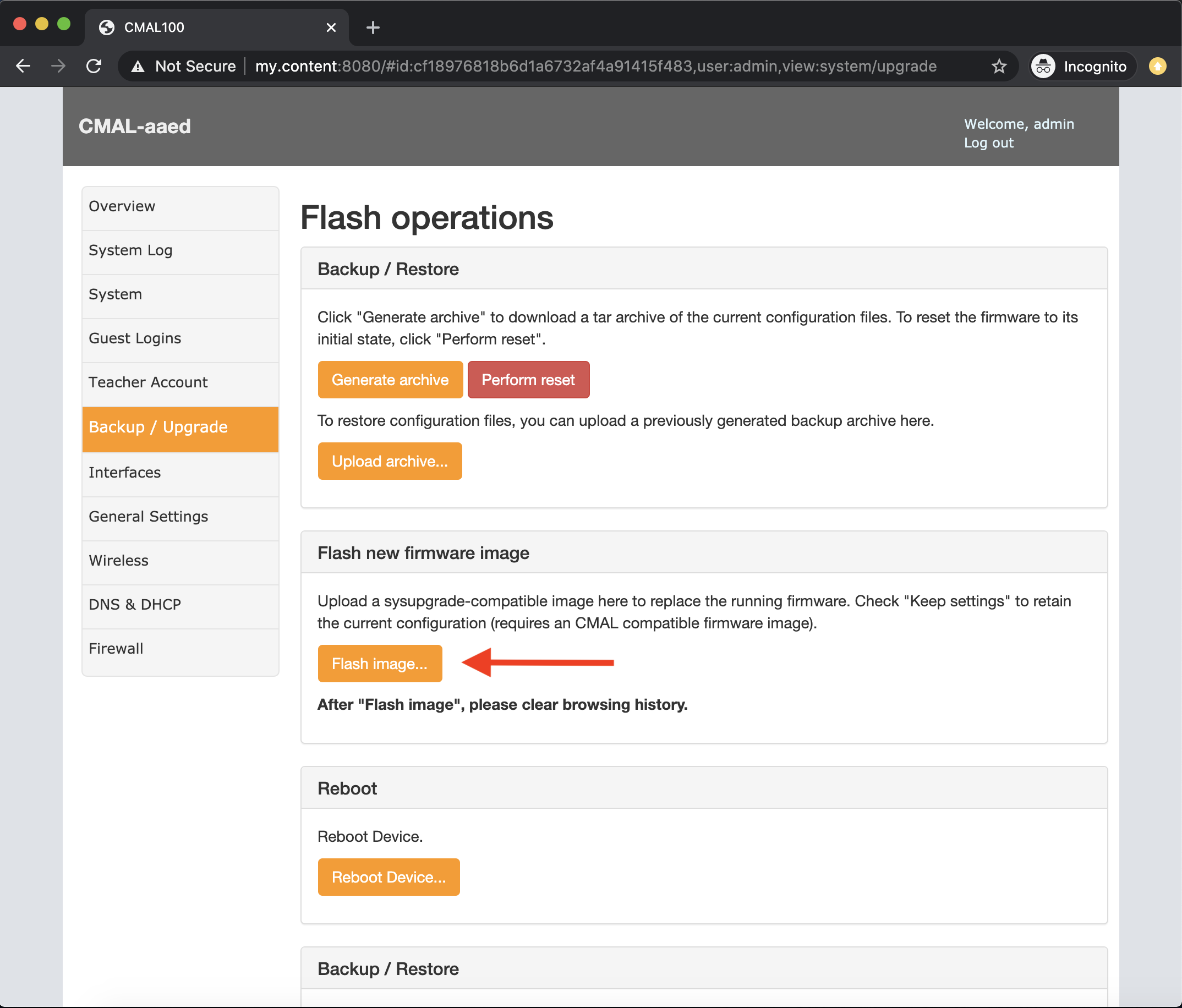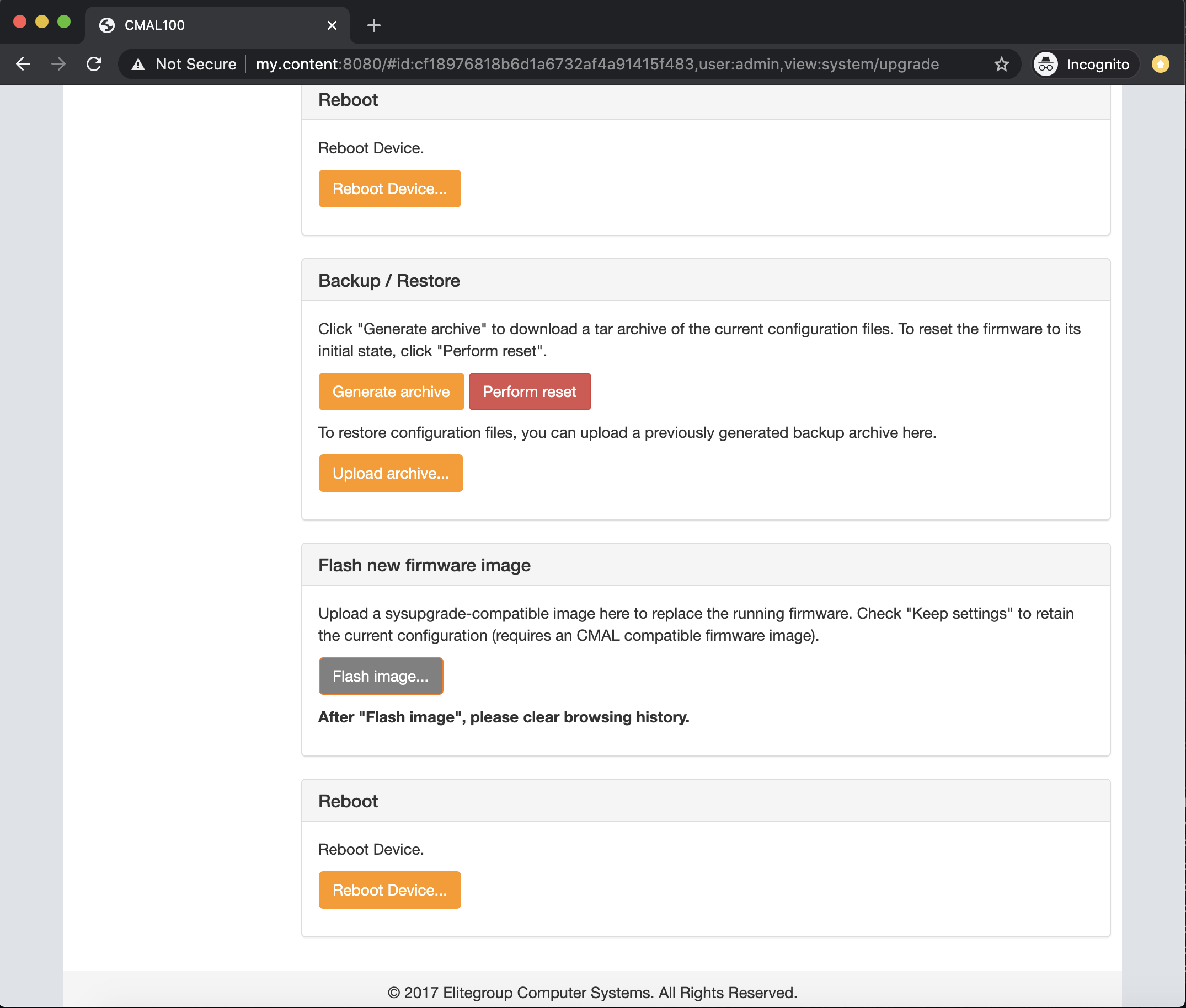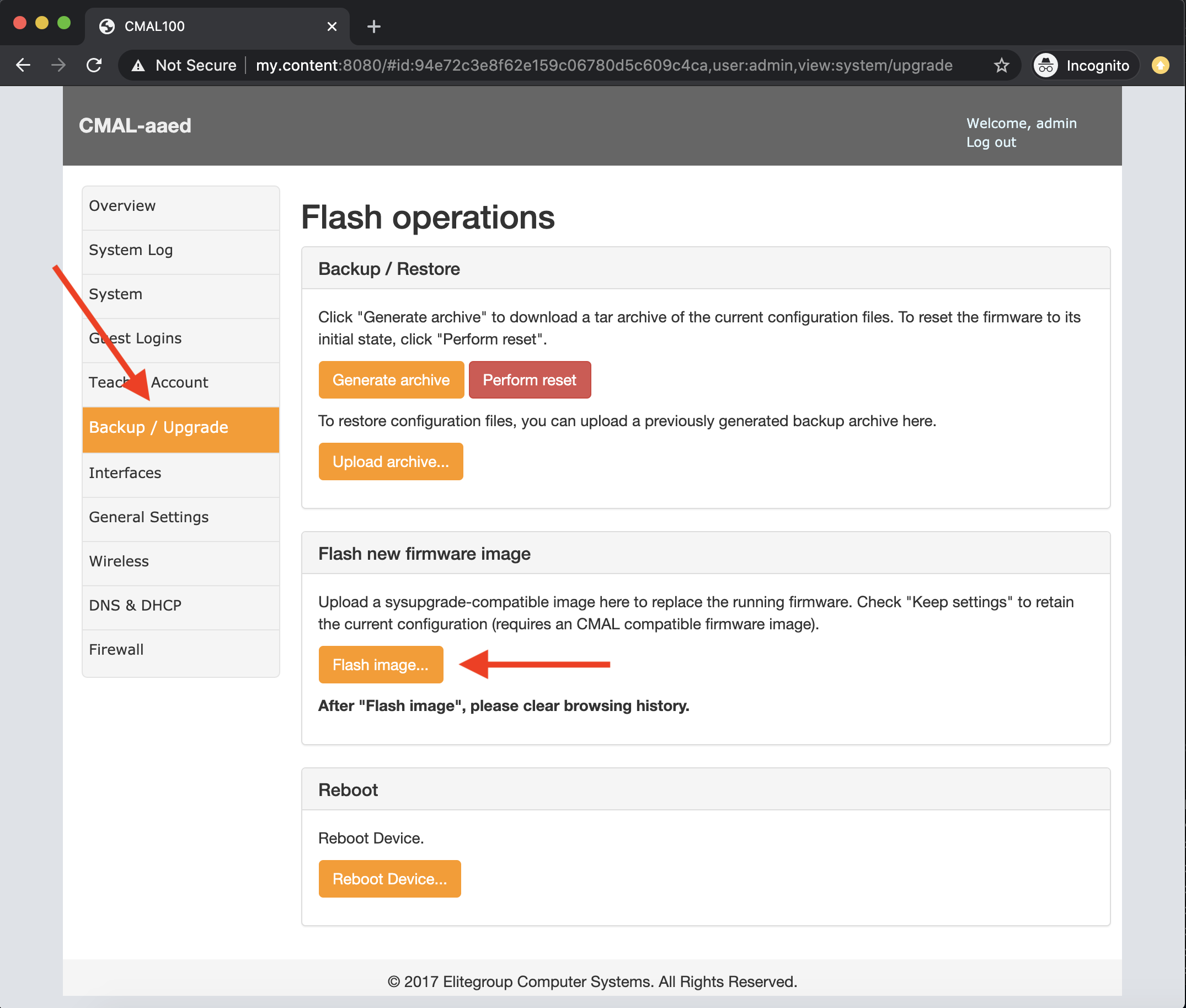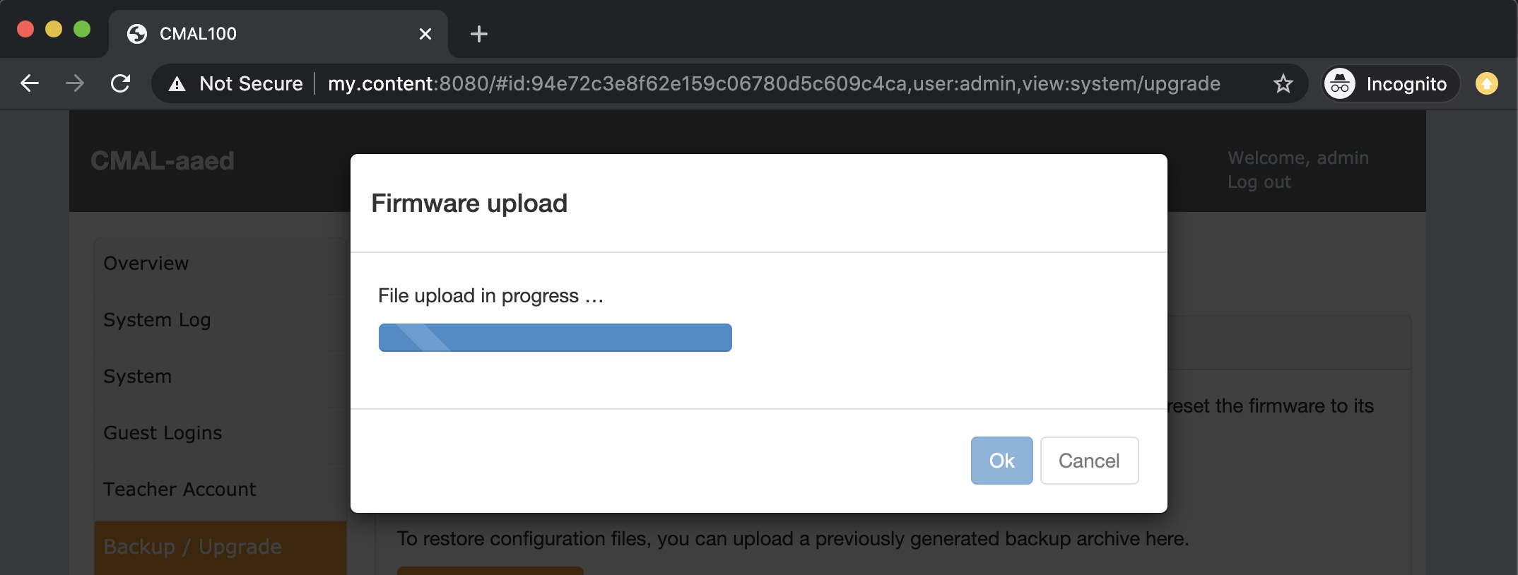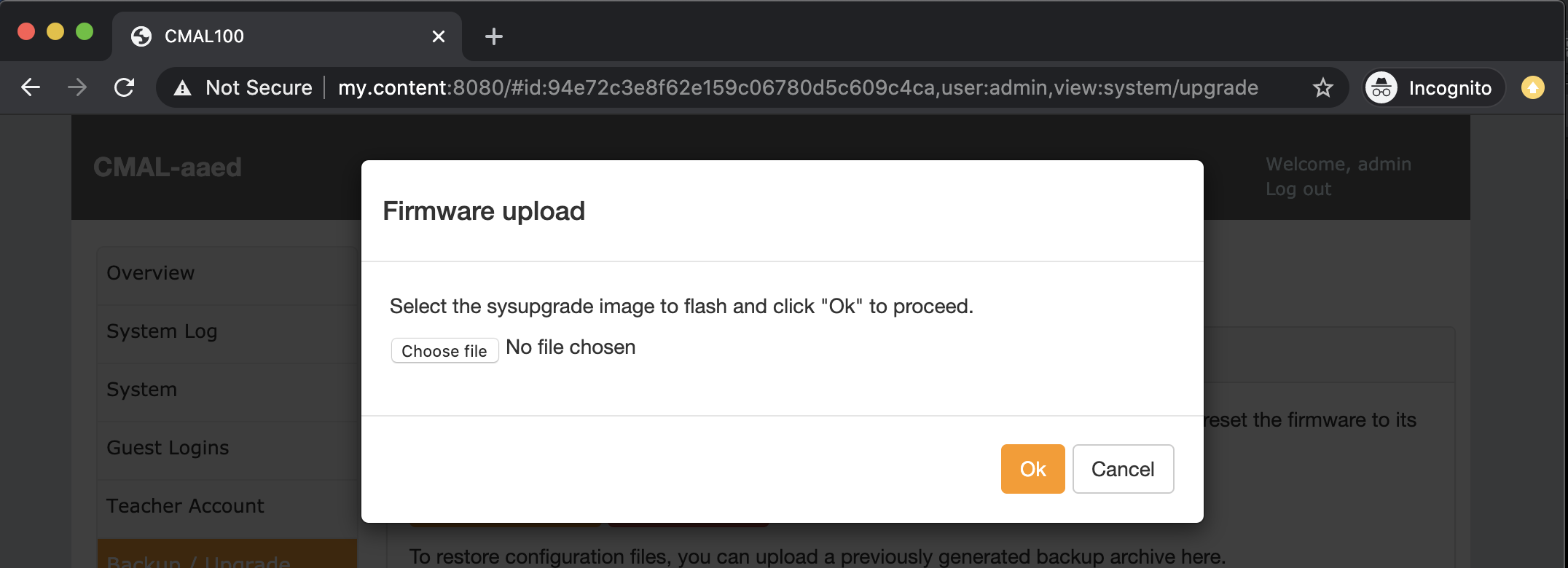 Click on Choose file and locate your firmware.bin file. Then click Ok.