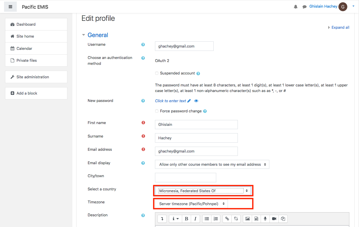 Put your department (e.g. National Department of Education, Chuuk Department of Education, etc.). And your state as shown below. Finally click to Update profile.
