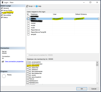 User mapping to the database you want to give read only access. And select db_readonly role.