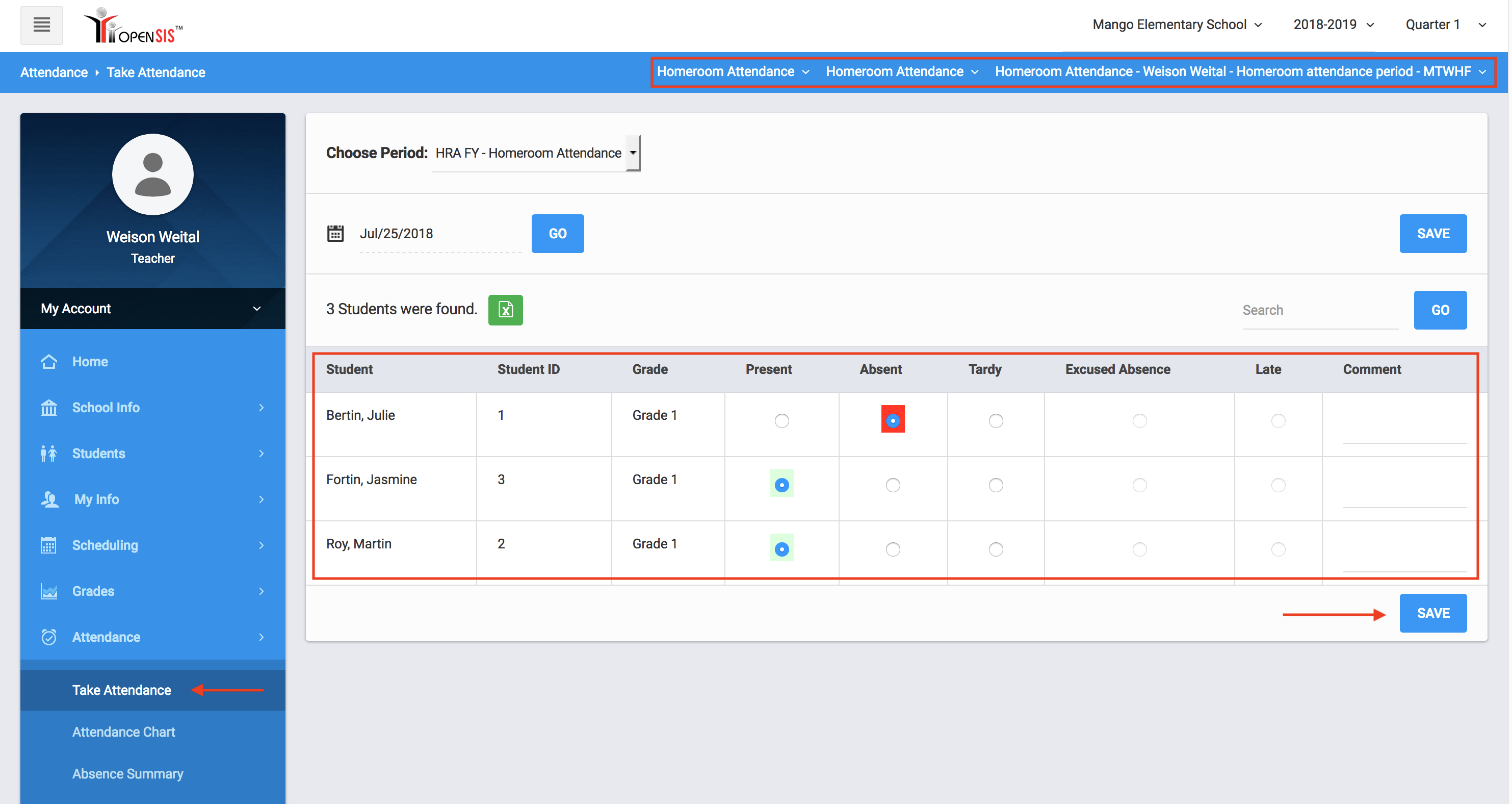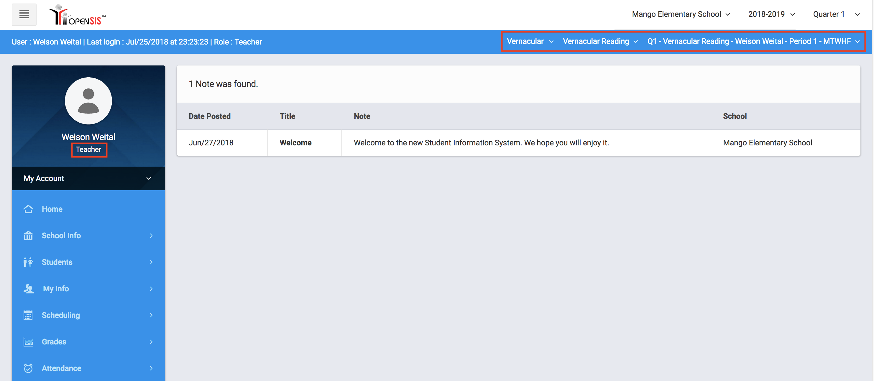 School Setup–>Courses–>Course Manager) - Add any missing teachers (